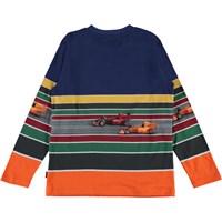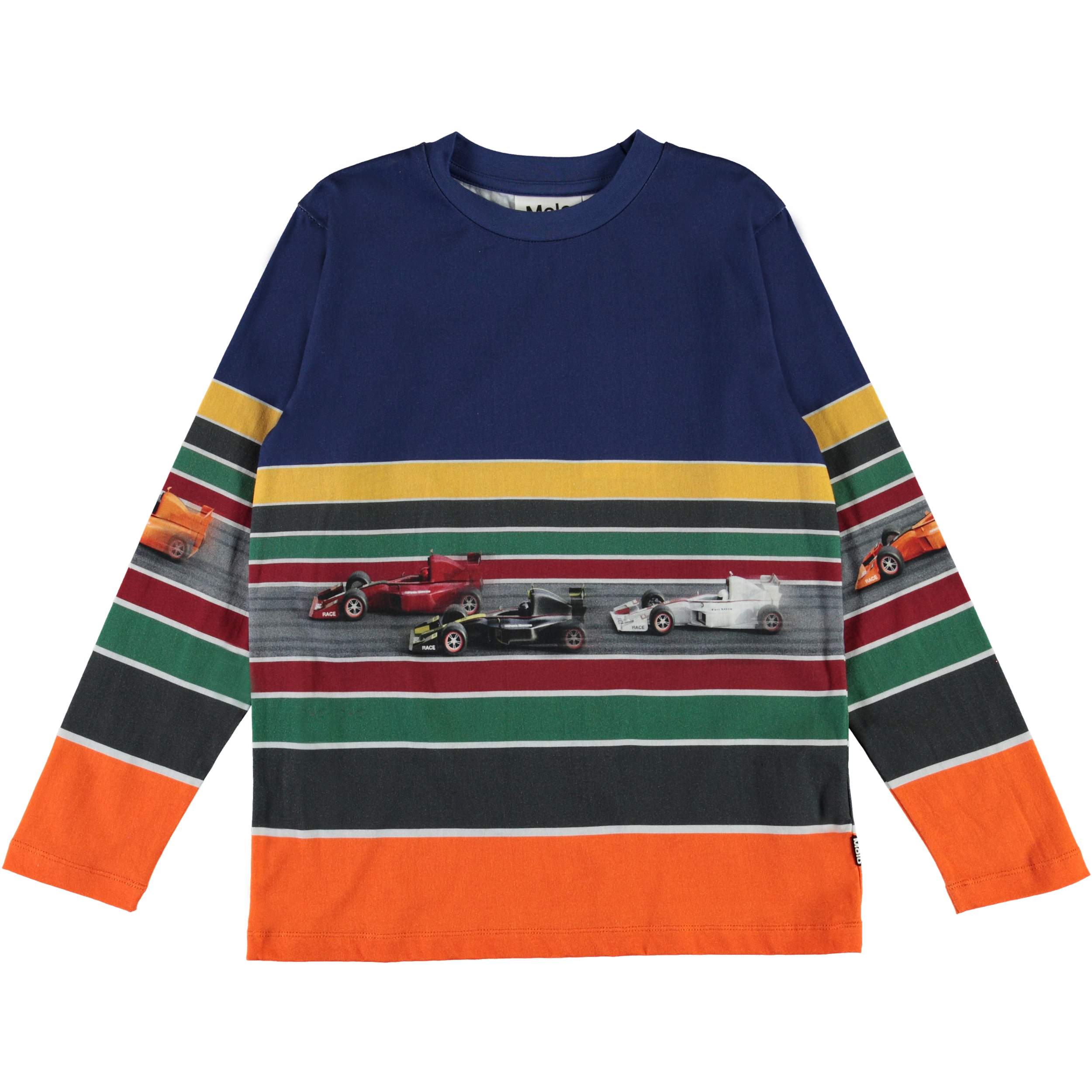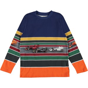 Reif is een kleurrijk gestreept shirt met raceauto's op één streep.