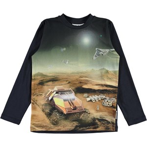 Reif is een zwarte shirt met lange mouwen en een print van Mars.