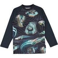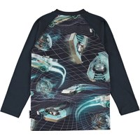Remington is een blauw shirt met een print van ‘Time Machine’. Remington heeft blauwe raglanmouwen en kraag