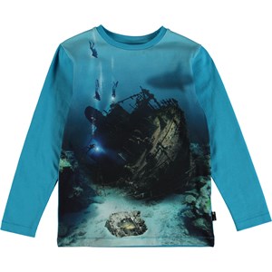 Rexol is een katoenen shirt met lange mouwen dat je meeneemt op een avontuur in de diepte met zijn "Shipwreck" print.