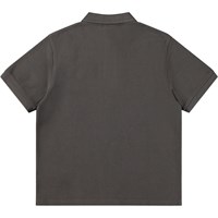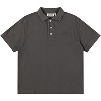 Grijze polo gemaakt van zachte, biologische katoen met een klassieke kraag, knoopsluiting aan de voorkant en bijpassendeboord rond de mouwen. De polo heeft een ruimvallende pasvorm die een ontspannen en comfortabele uitstraling geeft.