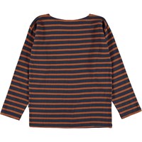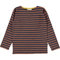 Rider is een gestreepte longlseeve in bruin en blauw.