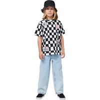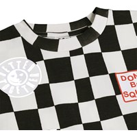 Zwart-wit geruite T-shirt gemaakt van zachte biologische katoen met een ribboord rond de hals. Het T-shirt heeft een ruimvallende pasvorm met een kleine print.