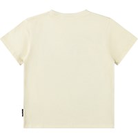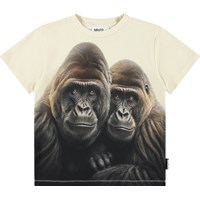 Beige T-shirt gemaakt van zachte biologische katoen met een ribboord rond de hals. Het T-shirt heeft een ruimvallende pasvorm met een print van gorilla's.