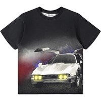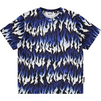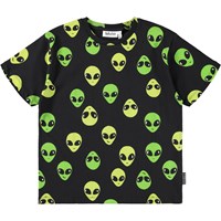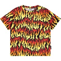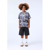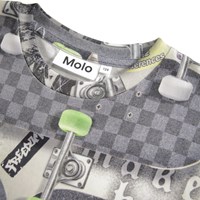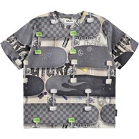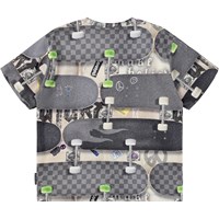 Grijs t-shirt gemaakt van zacht biologisch katoen met een ribboord rond de hals. Het t-shirt heeft een ruimvallende pasvorm met een print van skateboards.