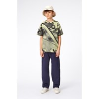 Riley is een gele t-shirt van 100% biologisch katoen met een print. De print heeft twee kleuren en is een abstracte print van een levensgrote skateboard. Riley heeft een ronde hals met ribboord en een ruimvallende pasvorm.