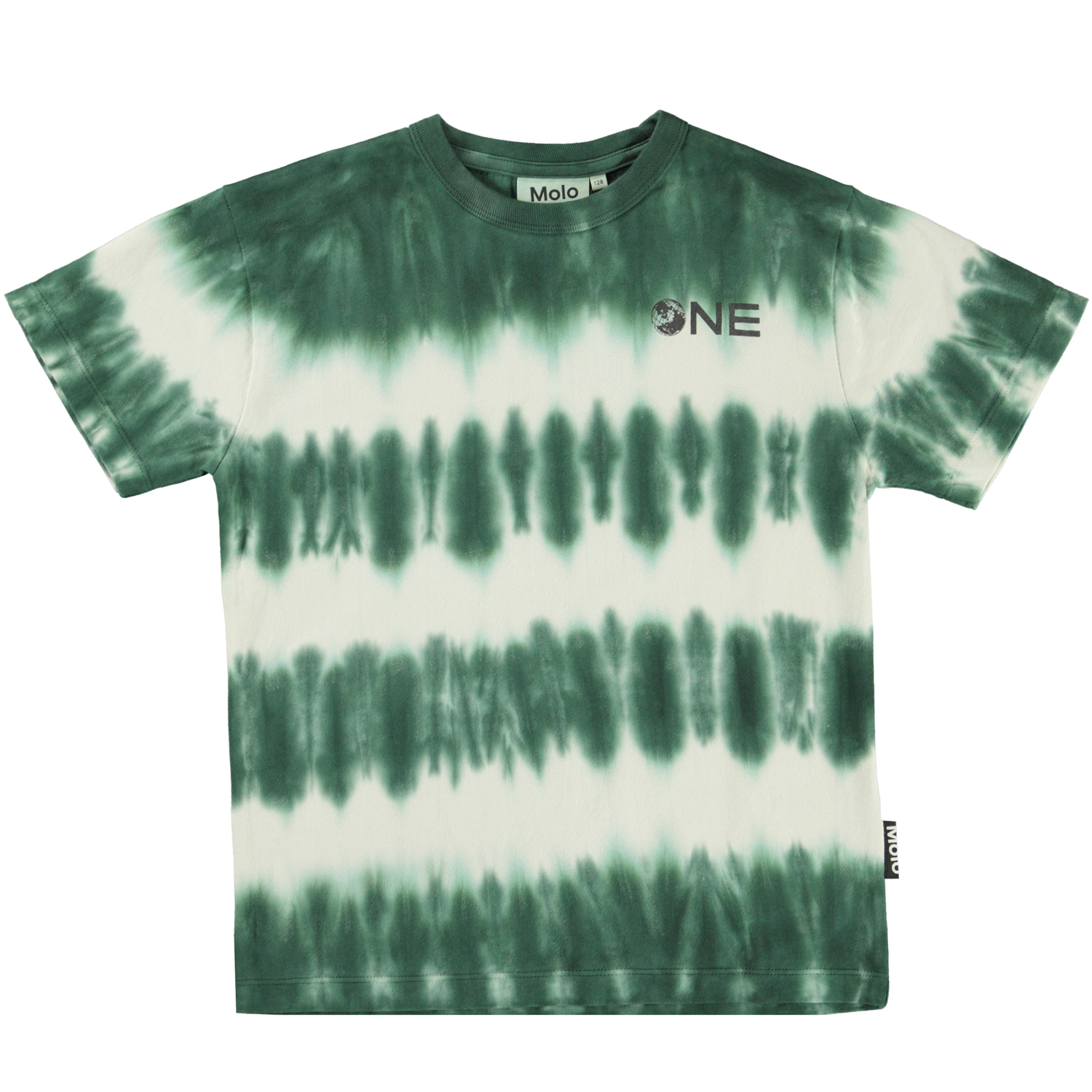 Riley is een t-shirt met een tie dye print in groen en wit.