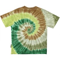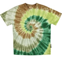 Riley is een t-shirt met een tie dye spiraal print in mooie groene en bruine kleuren.