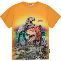 Off-white t-shirt van biologisch katoen met een ronde hals en geribbelde boord rond de hals. Het t-shirt heeft een ruime pasvorm en een bedrukte print op de voorkant van een kleine, groene pixel alien.