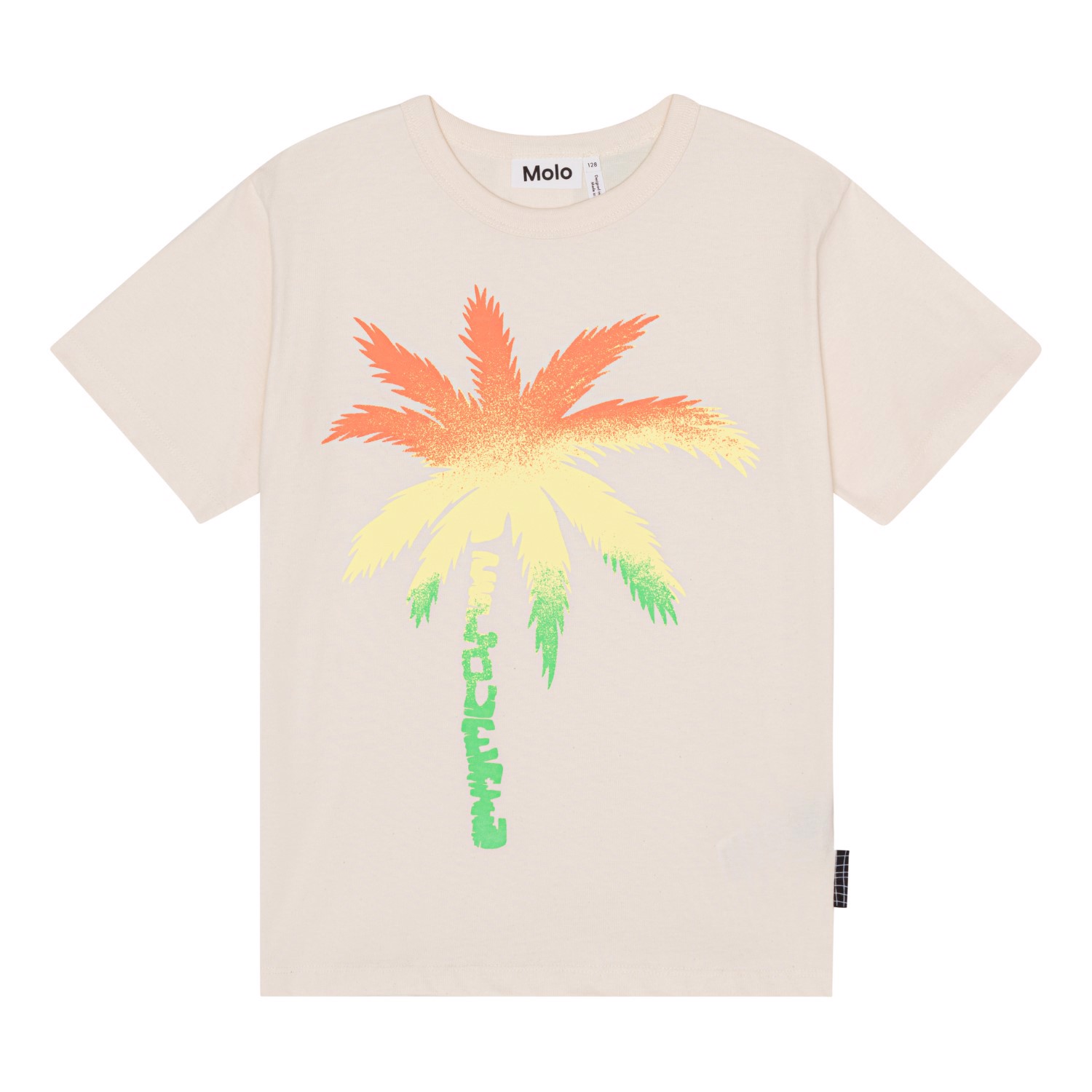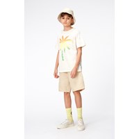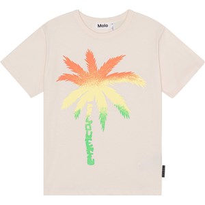Riley is een lichte naturelkleurige t-shirt van 100% biologisch katoen. De print is een grote palmboom in oranje, geel en groen, en als je goed kijkt, zie je misschien een verborgen 'More Love' boodschap. Riley heeft een ronde hals met ribboord en een ruimvallende pasvorm.