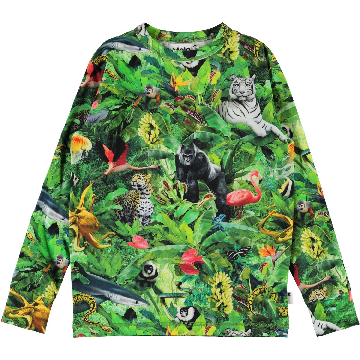 Rill is een shirt met lange mouwen met een ‘Fantasy Jungle’ print van verschillende dieren die normaal niet in de jungle leven.