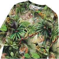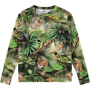 Longsleeve van zacht biologisch katoen met ribboord rond de hals en mouwen. De longsleeve heeft een normale pasvorm en een kleurrijke print van de jungle en vele dieren.
