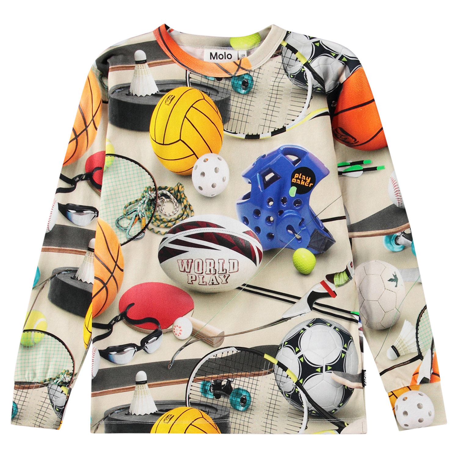Kleurrijke longsleeve van biologisch katoen met geribbelde manchetten en halsboord. De longsleeve heeft een normale pasvorm en een all-over print, geïnspireerd op het idee van de Olympische Spelen als één grote speeltuin waar je kunt experimenteren met alle sporten die je maar wilt. De print toont alle sportuitrusting die je je kunt voorstellen en moedigt je aan om te beginnen en plezier te hebben!