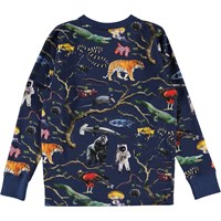 Verken de 'Tree of life' op het shirt van Rill. In de print staan aliens en wilde dieren verborgen. Het shirt is blauw en heeft lange mouwen.