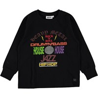 Ring is een zwarte shirt met lange mouwen en een print van verschillende muziekgenres op de voorkant. Ring is 100% katoen.