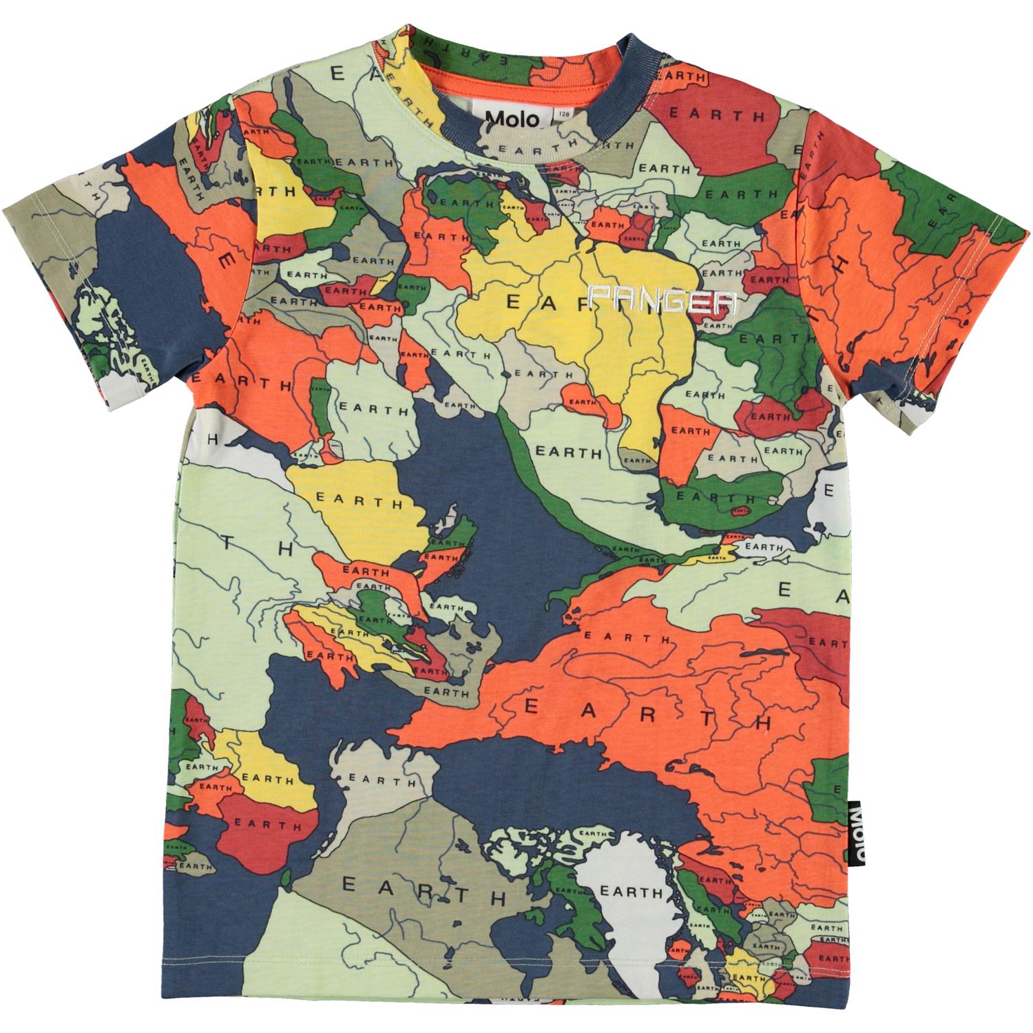 Road is een t-shirt in prachtige kleuren met de ‘Pangea’ print, dit is een wereldkaart zonder grenzen.