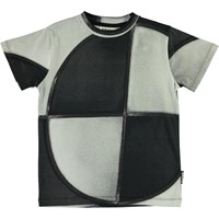 Road is een zwart-wit t-shirt met een basketbalpatroon.