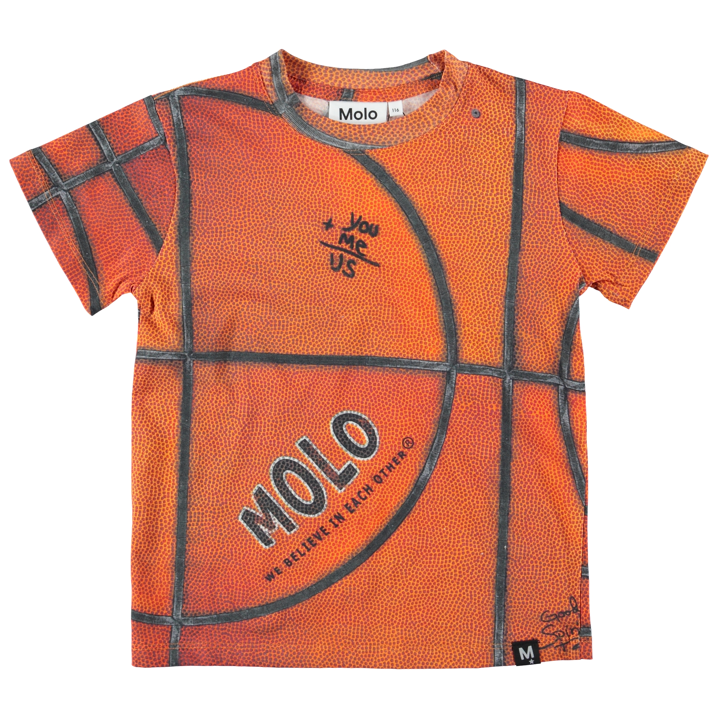 Road is een katoenen t-shirt met de "Basket Structure" print, dit is een koele, oranje print met kleine teksten.