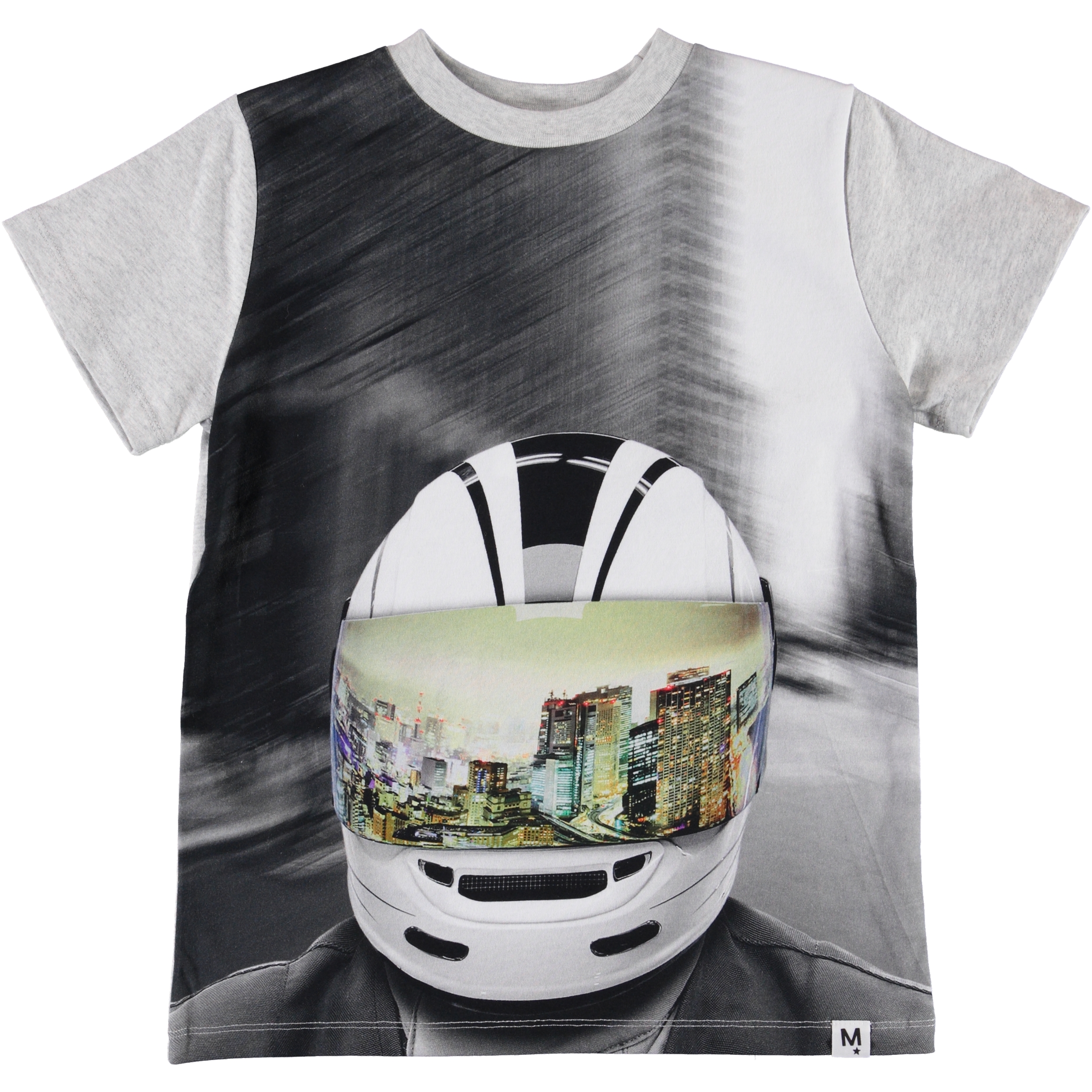 Zet je helm op zodat je helemaal klaar bent voor snelheid in het Road t-shirt, een cool grijze t-shirt met een motor. Het t-shirt is 100% katoen en heeft korte mouwen.