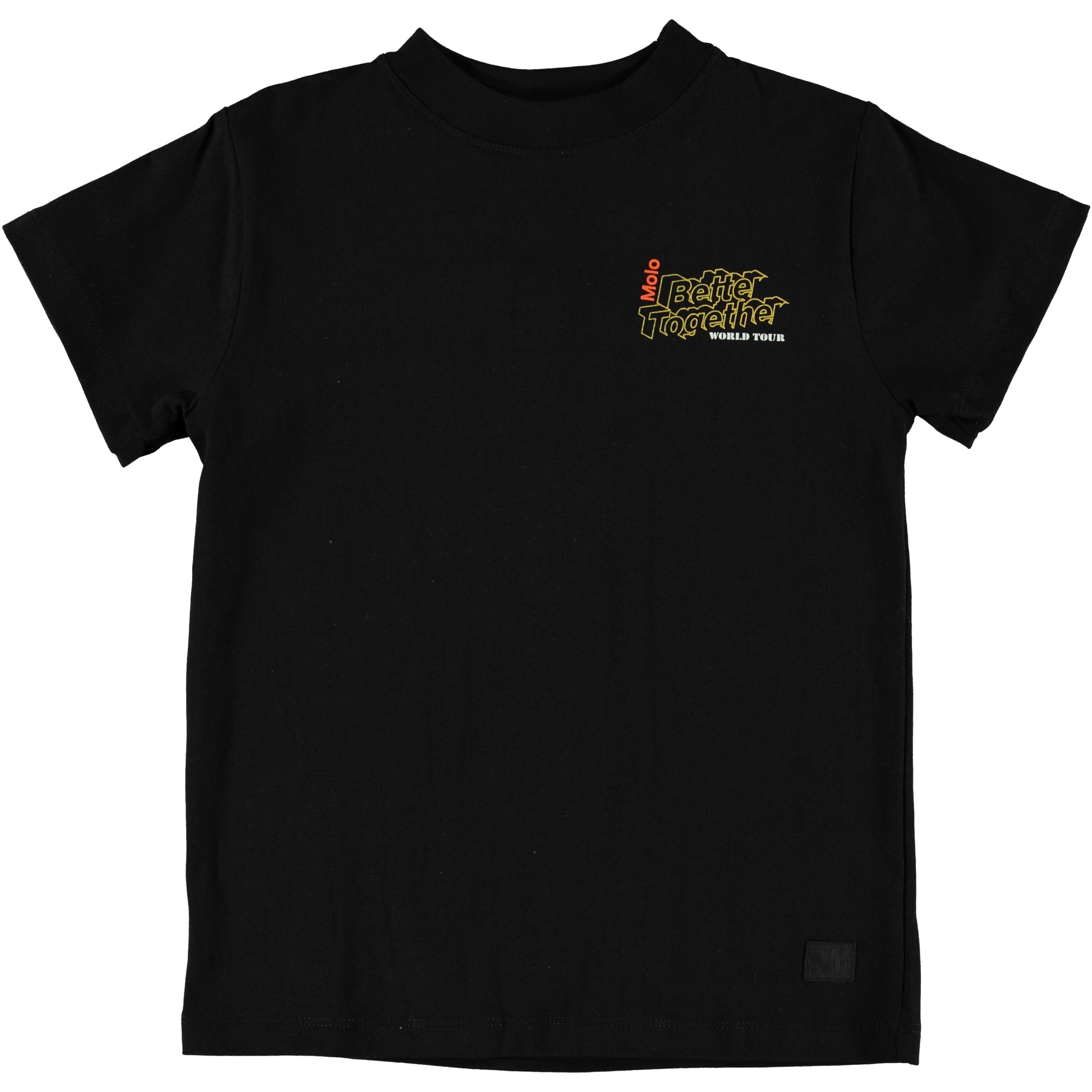 Ga op een wereldtournee in Molo's zwarte t-shirt, dat op de achterkant alle landen toont waar je Molo kunt vinden.