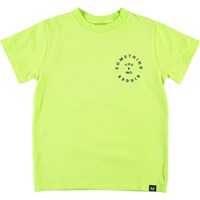 Maak jezelf zichtbaar in het coole Road t-shirt in neon groen met een tekst op de linkerborst.