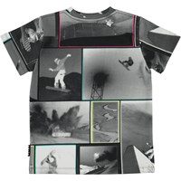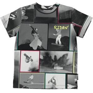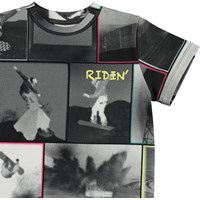 Road is een grijze t-shirt met een print van een snowboarder en de tekst 'Riding' op de borst.