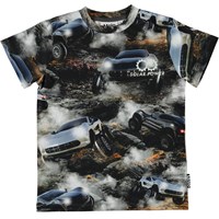 Road is een t-shirt met een print van off road auto’s en de tekst ‘Solar power’ op de borst.