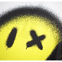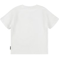Wit t-shirt gemaakt van zacht biologisch katoen met een ribboord rond de hals. Het t-shirt heeft een oversized pasvorm met een print van een lachend en smeltend gezicht dat met een spuitbus is gespoten.