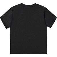Zwarte t-shirt van biologisch katoen met een ronde hals en geribbelde boord rond de hals. Het t-shirt heeft een oversized pasvorm en een print op de voorkant. De print is geïnspireerd op de James Webb-ruimtetelescoop en toont een telescoop in de ruimte met een stukje van de aarde erachter. Stel je eens voor welke beelden hij naar de aarde kan sturen.