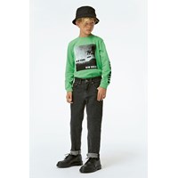 Rogert is een coole groene trui met een skaterprint op de voorkant met de tekst 'New game - New Rules' op de voorkant en de mouwen.