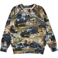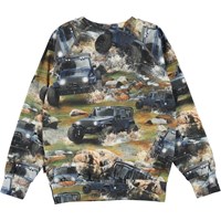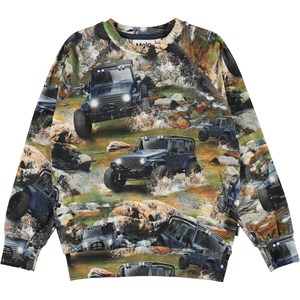 Romeo is een sweater met een print van jeeps die off road rijden.