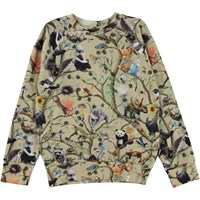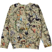 Beige longsleeve met een dierenprint. De print is van dieren uit de hele wereld in de Tree of Life. Het vertelt het verhaal van hoe alle wezens van de wereld met elkaar verbonden zijn. Net als het wortels van de boom zijn paddenstoelen en vogels, bomen en beren, groot en klein, allen met elkaar verbonden en moeten we allemaal op elkaar letten. Deze longsleeve is van 100% biologisch katoen en heeft een ronde hals met ribboord en een brede ribboord aan de mouwen. Het heeft een normale pasvorm.