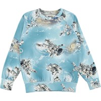 Romeo is een lichtblauwe sweater met een print van astronauten die in ruimte zweven.