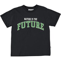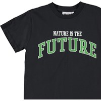 Roxo is een zwarte t-shirt met op de voorkant de tekst 'Nature is the future'.