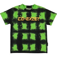 Roxo is een groen en zwart geruit t-shirt, waarbij de blok eruitziet als tie-dye. Het t-shirt heeft de tekst 'Co-Exist' in oranje op de borst.