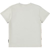 Beige t-shirt gemaakt van zacht biologisch katoen met een ribboord rond de hals. Het t-shirt heeft een ruimvallende pasvorm met aan de voorkant een print van een prachtige leeuwenfamilie.