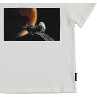 Roxo is een witte t-shirt met een print van satellieten die rond Mars vliegen.