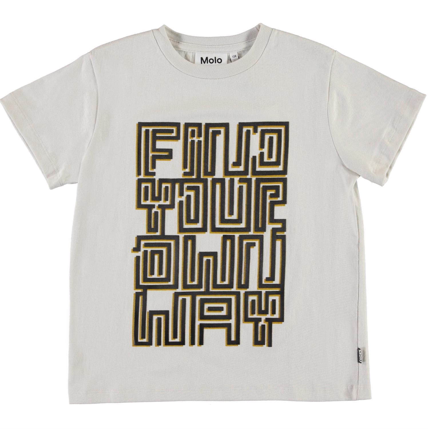 “Find your own way" in de print op de voorkant van het witte Roxo t-shirt.
