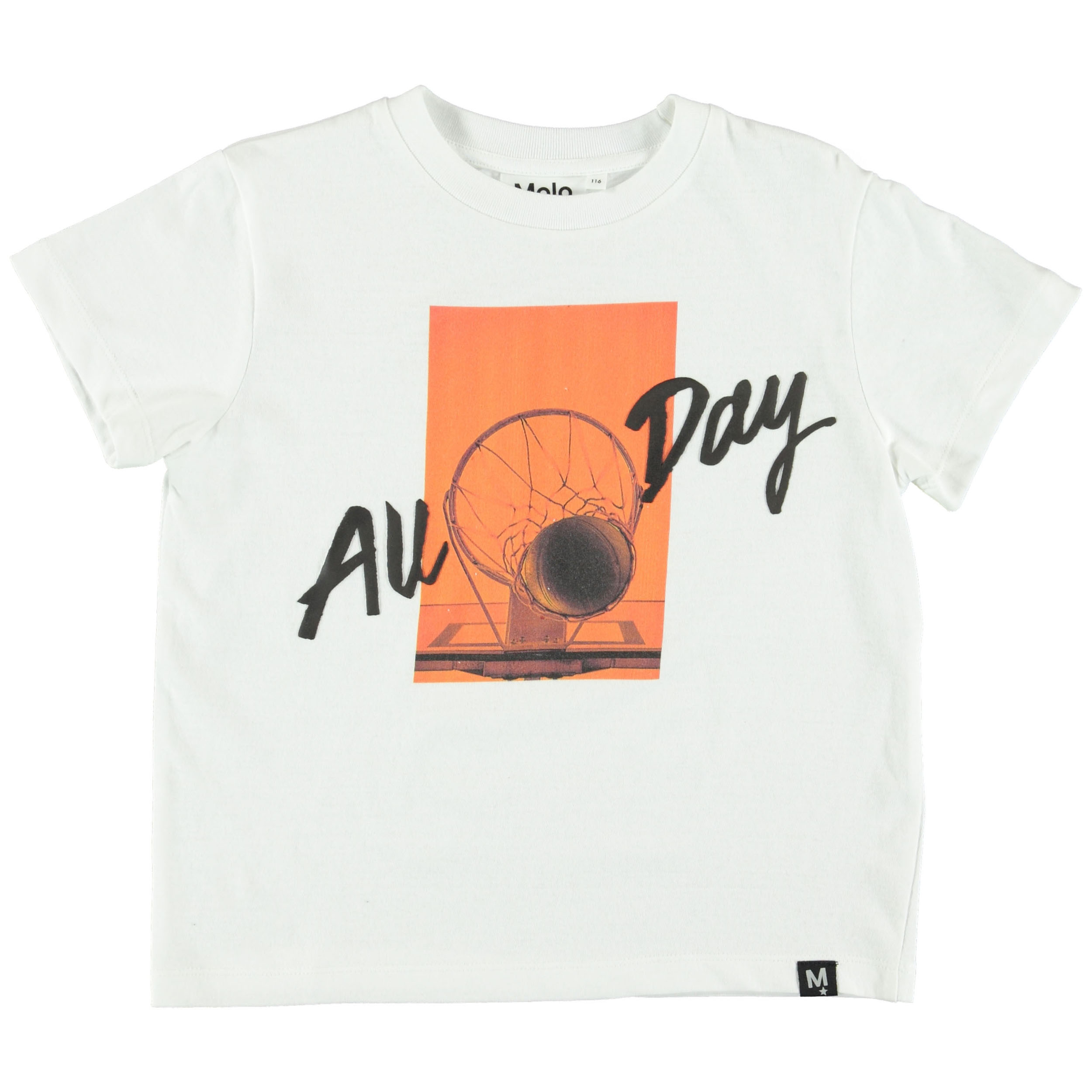 Speel de hele dag basketbal in Roxo, een wit katoenen t-shirt met een print op de voorkant.
