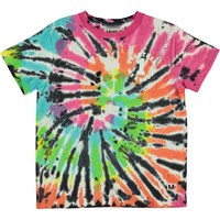Roxo is een veelkleurig tie-dye t-shirt met een grote "1" op de achterkant.