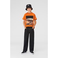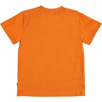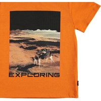 Roxo is een oranje t-shirt met op de voorkant een print van Mars en de tekst ‘Exploring’.