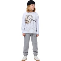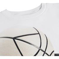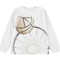 Witte longsleeve gemaakt van zachte biologische katoen met ribboorden rond de hals en mouwen. De longsleeve heeft een ruimvallende pasvorm en een print van een basketbalnet en een basketbal.