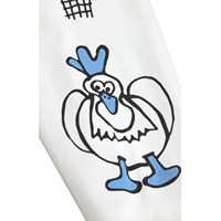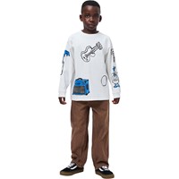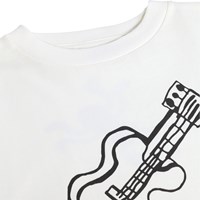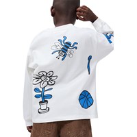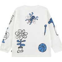Witte longsleeve gemaakt van zachte biologische katoen met ribboorden rond de hals en mouwen. De longsleeve heeft een ruimvallende pasvorm met schattige kleine blauwe en witte prints.