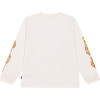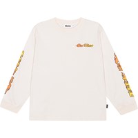 Rube is een gebroken witte shirt van 100% biologisch katoen met een oranje en gele print op de mouwen en voorkant. De print bruist en bestaat uit de woorden 'On Fire', geschreven met vlammende letters. Op de voorkant is een kleine print en een grote print op de mouwen in verlopende kleuren van oranje naar geel. Rube heeft een ribboord bij de ronde hals en mouwen en heeft een ruimvallende pasvorm.