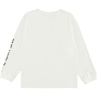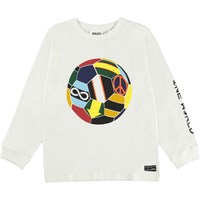Rube is een witte sweater met op de voorkant een print van kleurrijke voetballen.