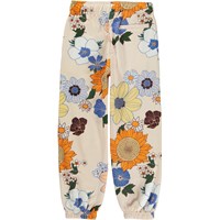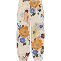 Gebroken witte joggingbroek met een print van gestileerde, handgetekende bloemen. De print heeft veel verschillende bloemen zoals zonnebloemen en dahlia's in roze en gele tinten. Deze joggingbroek is van 100% katoen, heeft elastiek en koordjes aan de binnenkant van de taille, een achterzak, elastiek bij de enkels en heeft een normale pasvorm. Voor een super coole set draag je deze joggingbroek met de bijpassende sweater Marge die dezelfde print heeft.