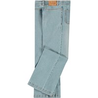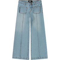 Blauwe jaren 70 jeans van biologisch katoen met gestikte vouw. De broek heeft een knoop- en ritssluiting, riemlussen en een interne verstelbare knoop in de taille voor een goede pasvorm. Het heeft wijduitlopende pijpen en opgestikte zakken aan de voorkant.