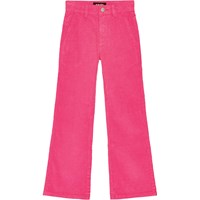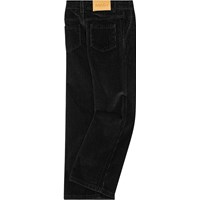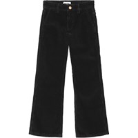 Zwarte broek van zacht katoenen fluweel met uitlopende pijpen. De broek heeft zowel voor- als achterzakken, en sluit met een knoop en rits in de taille en heeft een verstelbare elastiekaan de binnenkant voor een comfortabele pasvorm.