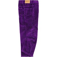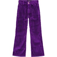 Paarse wijde broek in zacht katoenen fluweel met uitlopende pijpen De broek heeft zowel voor- als achterzakken. De taille heeft een knoop- en ritssluiting en een interne verstelbare elastiek aan de binnenkant voor een comfortabele pasvorm.
