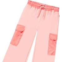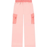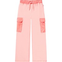 Donkerroze broek van biologisch katoen met een elastische taille, koordsluiting en het heeft een ruimvallende pasvorm. Daarnaast heeft de broek een stijlvol detail met grote cargozakken in het midden van de pijpen.